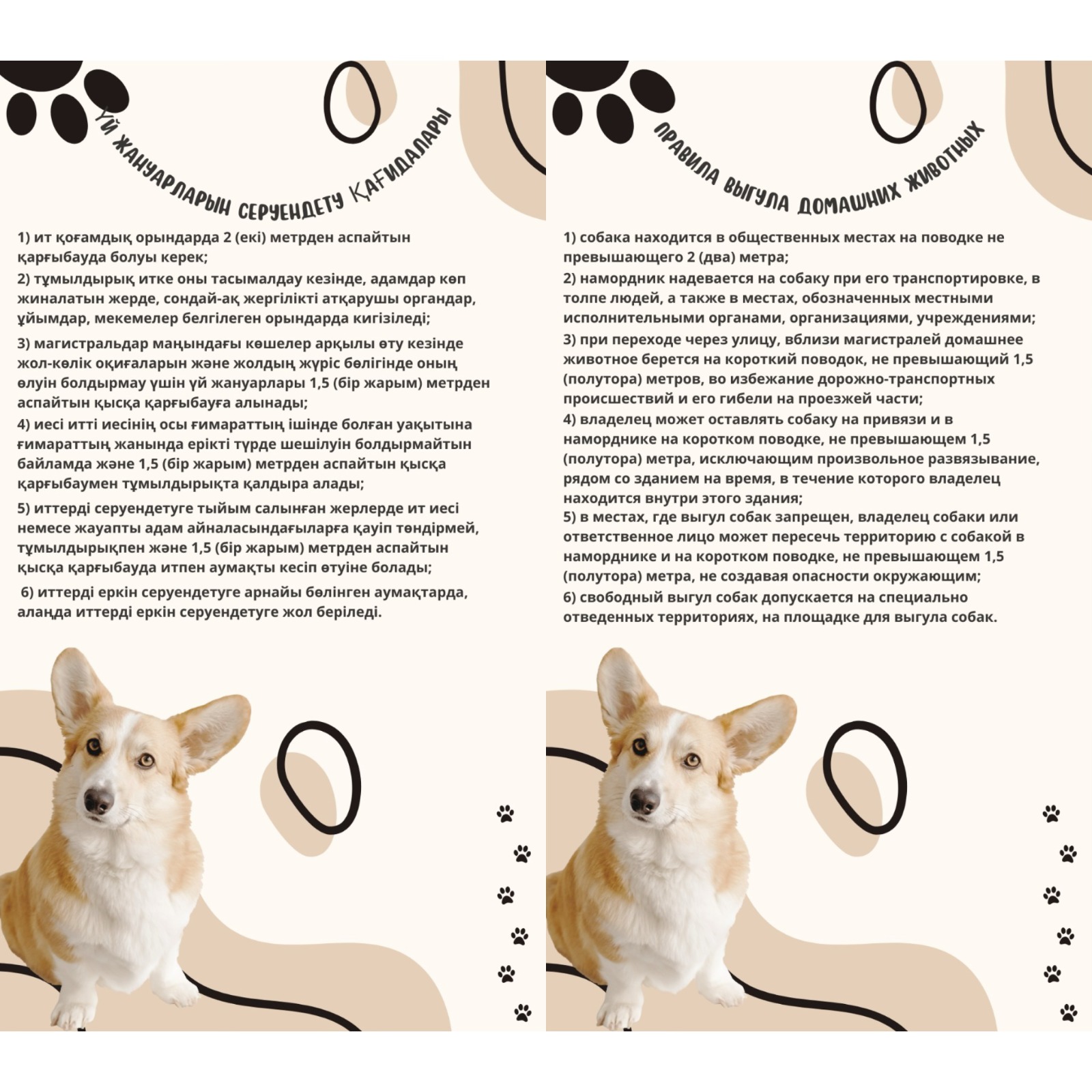 Ақпараттық жадыраулар жануарлардың иелеріне таратылды және ұсынымдар үй жануарларын ұстау және жүру ережелеріне сәйкес берілді, сонымен қатар иттер мен мысықтарды сындыру.